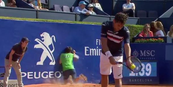 On connaissait déjà le risque d’insolation et d’impact de balles mais le métier de ramasseur de balles n’est définitivement pas de tout repos… Lors du tournoi de Barcelone, pendant le match opposant Nicolas Almagro et Teymuraz Gabashvili, un ramasseur de balles a connu un petit problème au freinage et a fini dans la bâche… On vous laisse admirer !