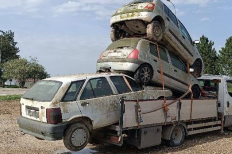 « Outre la dangerosité de son arrimage de fortune et la surcharge de son camion, le conducteur, ferrailleur de profession, ne dispose pas des autorisations nécessaires pour l’enlèvement et le transport des véhicules hors d’usage », lit-on également.
