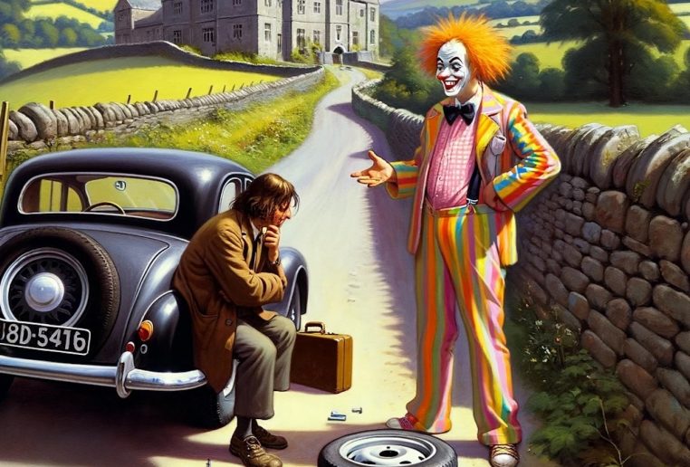 Blague du jour : Un automobiliste croise un fou après avoir crevé ses pneus