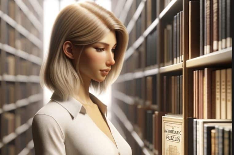 Une blonde se rend à la bibliothèque et emprunte un livre intitulé « Les Énigmes Mathématiques ». Elle rentre chez elle, commence à lire le livre, puis décide de tester ses compétences en résolvant l’une des énigmes.