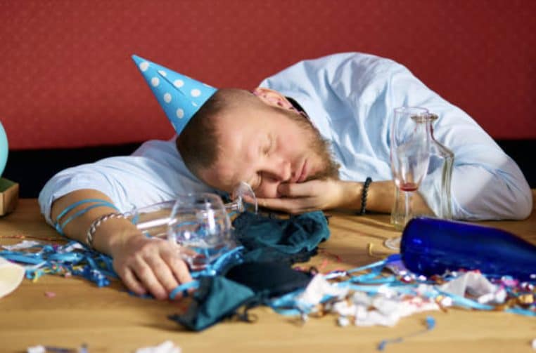 – Ah donc c’est pour ça qu’il est bourré, il célèbre encore 10 ans plus tard la réponse et le fait que tu l’aies quitté.