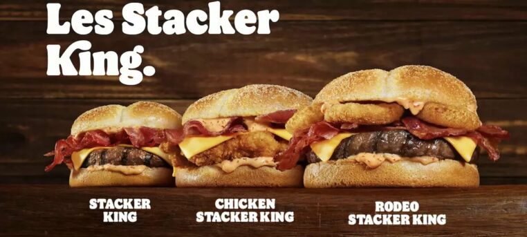 Trois Stacker King différents seront donc ajoutés au menu. On retrouve d’abord le classique, rempli d’un steak grillé, de bacon grillé, de fromage, et de la fameuse sauce Stacker. Une déclinaison au poulet est également proposée. Et le dernier fera aussi des heureux: il s’agit de Stacker King original mais avec des onion rings en plus. De quoi bien se régaler. Et pour accompagner cette gamme de burger, la chaine de fast-food proposera aussi des « King fries Stacker King »: des frites, des éclats d’oignon, du bacon et de la sauce Stacker.