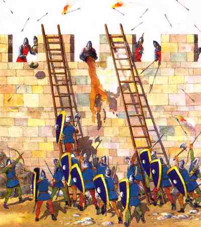 C’était de l’eau bouillante, de la poix ou des projectiles…