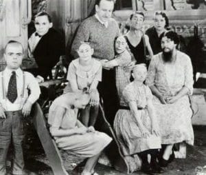 Généralement associés à des cirques ou carnavals, ces freakshows étaient souvent ambulants, et ont longtemps nourri l’imaginaire collectif. C’est notamment à eux que l’on doit des films tels que La monstrueuse parade (Freaks) ou Elephantman, basé sur l’histoire réelle de Joseph Merrick, un homme au physique particulièrement choquant.