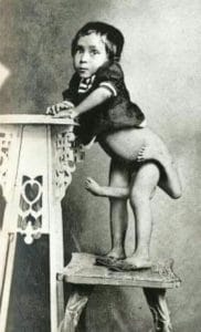 Ci-dessous, 10 photos de « monstres » de l’époque, hommes, femmes et enfants atteints pour de nombreuses et différentes raisons, de difformités jugées suffisantes à l’époque pour les faire parader comme bêtes de foire. Si l’on est évidemment ravis que de telles pratiques ne soient plus autorisées, cela reste une part importante de notre histoire, de notre culture, et il serait dommage de l’oublier.