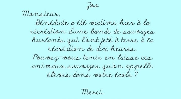 TDN > Actualité 90 mots d’excuse de parents aux profs à lire absolument Publié par Marion Ristor le 12 Avr 2024 à 18:24 Suivez nous sur Google News Partagez cet article Page précédente Page suivante