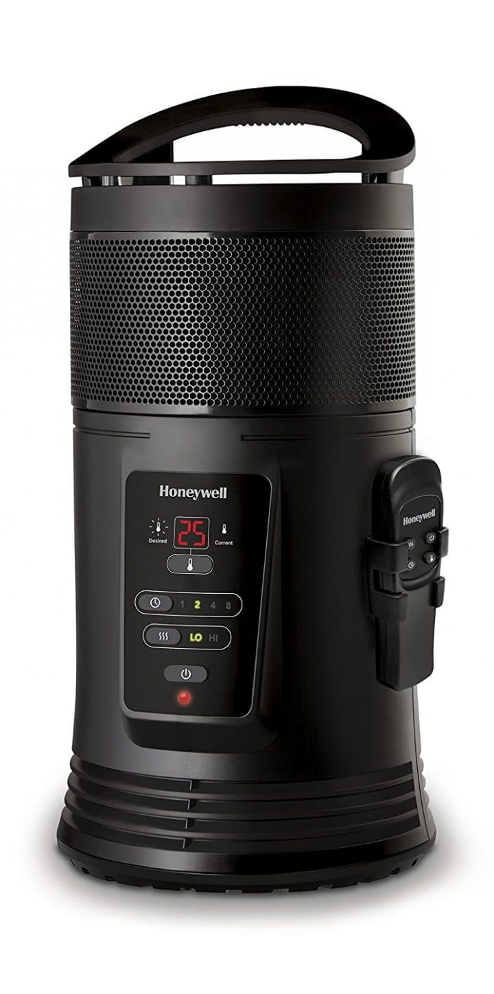 Le chauffage Honeywell réchauffe rapidement votre pièce tout en consommant peu d’énergie. Sa puissance peut atteindre les 1800 watts. De plus, il tourne jusqu’à 360°, chauffant uniformément votre surface. Vous pouvez le programmer grâce au minuteur présent sur l’appareil. Et il dispose même d’une télécommande pour pouvoir le contrôler à distance. Si c’est pas chouette ça !