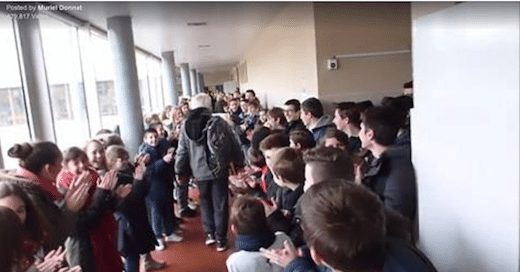 Bon sang cette vidéo va vous mettre des frissons ! En effet, ce sont pas moins de 700 élèves qui se sont réunis ce jour là pour dire au revoir à un professeur d’EPS qui partait en retraite. Alors là, on peut dire que ça fait vraiment du bien… On vous parle toujours de ce qui se passe de pire dans les établissements scolaires. Aujourd’hui, on est heureux de vous relayer cette info. Et vous allez voir que la vidéo est vraiment émouvante…