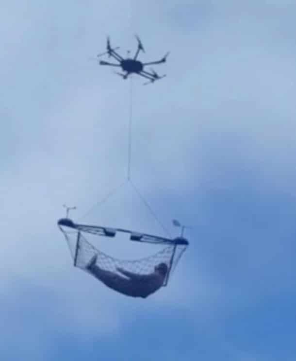 Il installe son hamac dans les airs, suspendu à un drone (VIDEO)