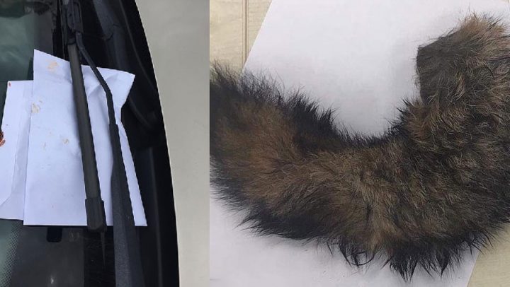 « Chaque fois que tu porteras atteinte à un chasseur sur les réseaux sociaux, un autre renard mourra », le message est clair et terrifiant. Voici la menace reçue par un activiste des droits des animaux sur le pare-brise de sa voiture. Pire, à côté de cette lettre, il a reçu une queue de renard coupée. Regardez les images horribles et cruelles auxquelles il a été confronté.