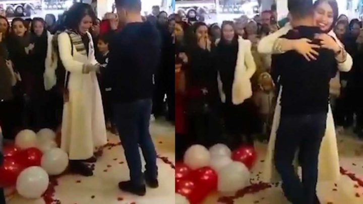 Ces Iraniens viennent de vivre le plus beau moment de leur vie. Devant les clients d’un centre commercial, cet homme a demandé sa compagne en mariage. Les passants qui ont assisté à la scène émouvante ont sorti leur téléphone pour filmer le moment où elle lui a dit oui. Tout le monde est heureux pour eux, sauf les autorités iraniennes qui condamnent fermement cette scène qui s’est déroulée à Arak, une ville centrale du pays. Les deux futurs mariés ont été arrêtés par la police pour cet acte qui ne respecte pas la doctrine islamique. Regardez la vidéo pour découvrir la demande en mariage jugée choquante en Iran.