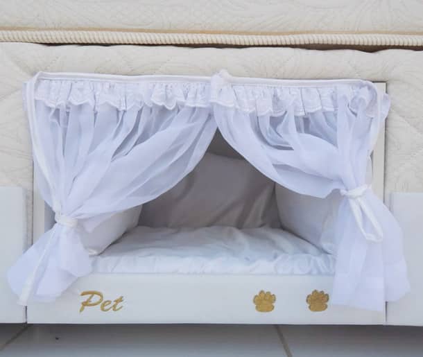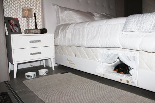 La compagnie de matelas brésilienne « Colchao inteligente postural » a trouvé la solution à ce problème récurrent. Avec une idée géniale, la compagnie révolutionne le monde de la literie en proposant un matelas qui intègre un petit compartiment pour nos animaux de compagnie. L’espace est emménagé comme un petit lit, avec des coussins rembourrés et un petit rideau (intimité oblige…). Plus aucun doute, les animaux y sont comme des rois !