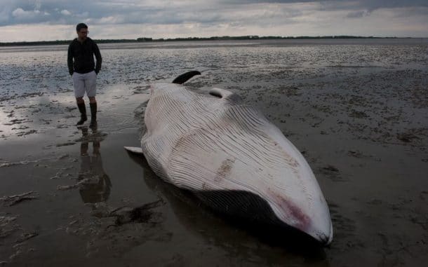 C’est dans la baie des Veys, en Normandie, que des conchyliculteurs (éleveurs de coquillages) ont fait la découverte d’une baleine échouée. Plus précisément, il s’agissait d’un rorqual commun d’une longueur approximative de 10 mètres. Il fut d’ailleurs découvert le mercredi 28 juin 2017 et son poids fut estimé entre 10 et 15 tonnes. Ce qui est bien inférieur au poids que devrait normalement peser le cétacé. L’animal avait manifestement souffert de la faim et serait mort « naturellement ». Après être tombée malade, cette femelle fut incapable de se nourrir correctement. Et pour cause, elle était parasitée. Comme le rapporte l’Observatoire Pelagis du CNRS de La Rochelle, chargé de réaliser l’autopsie : « des vers sortaient de sa peau ».