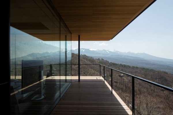 Sur l’ancien site des JO de Nagano, se trouve la plus belle terrasse de tout le Japon. Elle fait partie d’un sublime villa construite face aux montagnes Yatsugatake.