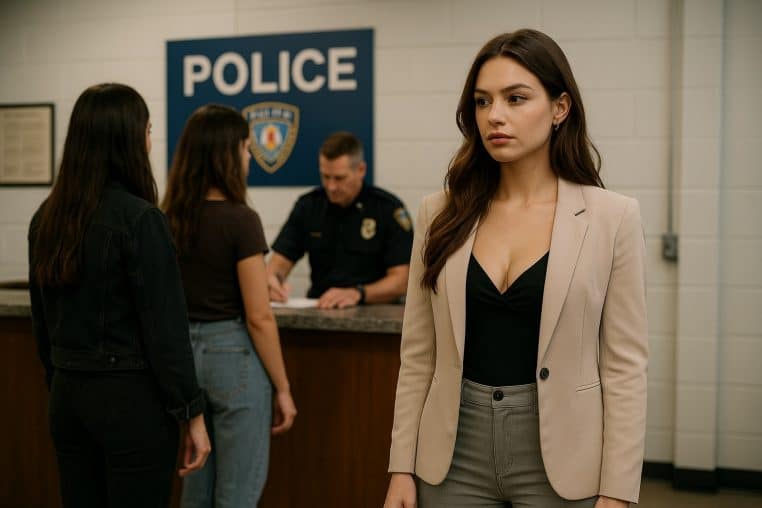Les policiers font aligner toutes les filles afin de relever de leur identité, lorsque la grand-mère fait irruption dans le commissariat pour demander un renseignement.