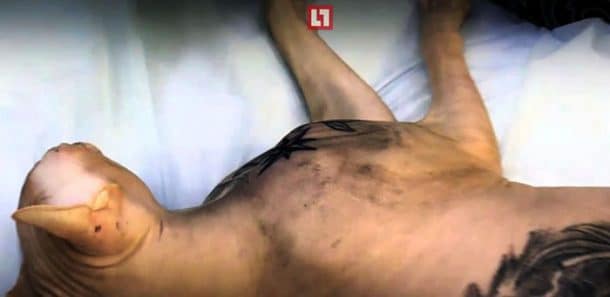 Cette fois-ci, on peut le dire, l’idiotie humaine va trop loin ! Les propriétaires d’animaux se comportent parfois avec eux comme s’ils étaient humains sans penser à leur bonheur. Quand on oblige son toutou à porter un petit manteau ridicule ou son chat à porter un collier Swarovski, rien ne prouve que ça leur fait plaisir, mais ce n’est rien comparé à ce que ce Russe a fait à son animal. Aleksandr Purtov a décidé de tatouer Demon, son sphynx, un chat sans poil.
