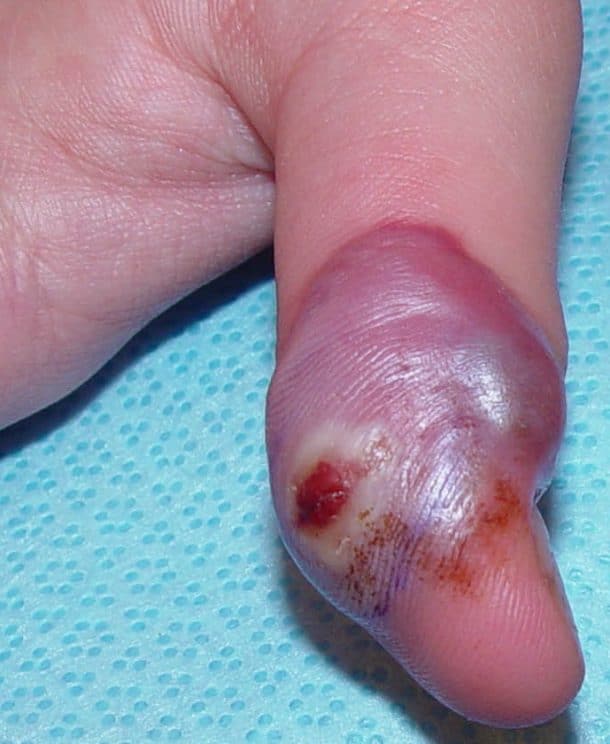 Image d’illustration d’un patient atteint d’orf au pouce, tout comme Asher (dermaamin)