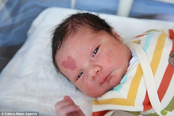 Avez-vous une tache de naissance ? Et bien moi oui. Une sur la cheville. D’ailleurs je ne la trouve pas très belle mais bon… on fait avec. Ce bébé lui a une tache de naissance qui envoie ! En effet, c’est sur le front que ce petit garçon a une tache en forme de coeur ! Adorable n’est-ce pas ?
