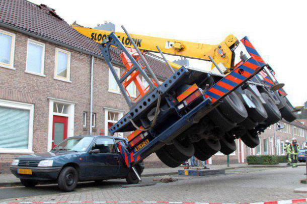 Si on oublie que la grue le BTP tout ça tout ça c’est pas super sexy, le concept un peu Roméo et Juliette, on trouve que ça le fait grave ! sauf que ça l’a pas fait du tout en fait… En effet, la grue a basculé et s’est effondrée sur les habitations. 6 logements ont du être évacués mais fort heureusement il n’y a eu aucun blessé.