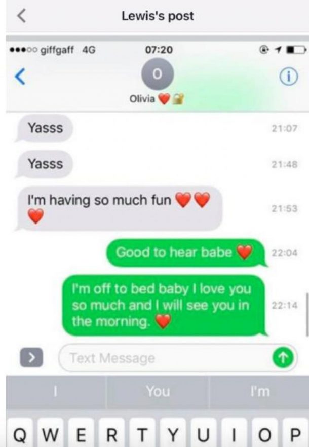 Olivia envoyait des messages heureux et amoureux à Lewis avant que sa vie soit emportée dans l’attentat terroriste. Elle écrivait à Lewis qu’elle s’amusait beaucoup à ce concert et ajoutait même des coeurs. Lewis lui a répondu qu’il était heureux pour elle, qu’il l’aimait, qu’il allait se coucher et qu’il la verrait le lendemain. Malheureusement, Lewis ne reverra jamais Olivia.