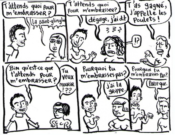 Une BD réalisée par les blogueurs de Koudavbine reprend les éléments de la vidéo » comment embrasser une fille en 10 secondes » et les détourne de manière hilarante.
