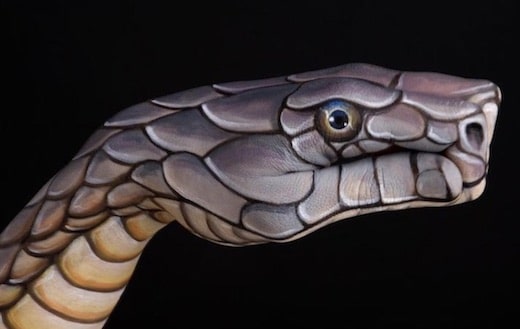 Connaissez-vous le « Bodypainting« ? Il s’agit d’un art qui consiste à peindre sur le corps. Guido Daniele est un spécialiste en la matière. L’artiste se sert non pas de son corps entier, mais de ses mains pour créer des illusions d’optique parfaites. Ainsi, comme nous le montre la vidéo en haut de l’article, Guido est passionné par les animaux, et sait parfaitement les reproduire. Et vous allez voir que reproduire un animal sur une main, en utilisant la deuxième pour peindre, n’est pas chose aisée…