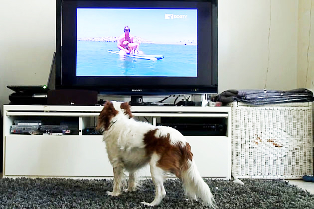 Bien que les chiens soient déjà sensibles à la télévision, comme celui-ci qui pleure devant Le Roi Lion, les images et les sons qu’émettront les programmes ont été conçu spécialement pour la vision et l’ouïe des chiens.