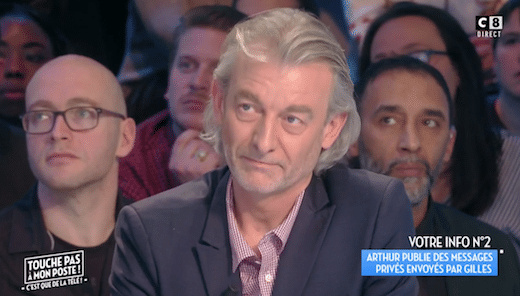 Comme nous le vous disions ICI hier, Arthur a dévoilé sur Twitter des échanges privés qu’il a eu avec Gilles Verdez. En effet, l’animateur voulait montrer que Gilles Verdez avait un double discours. Dans TPMP, il n’hésite pas à tacler Arthur alors qu’en privé, il se montre beaucoup plus conciliant à l’égard de l’animateur. Et bien évidemment, hier soir, Cyril Hanouna et sa bande sont revenus sur cette « provocation » d’Arthur. Et bien évidemment, ça n’a pas plus du tout à Gilles Verdez qui disait quelques jours auparavant que la carrière d’Arthur était sur le déclin.