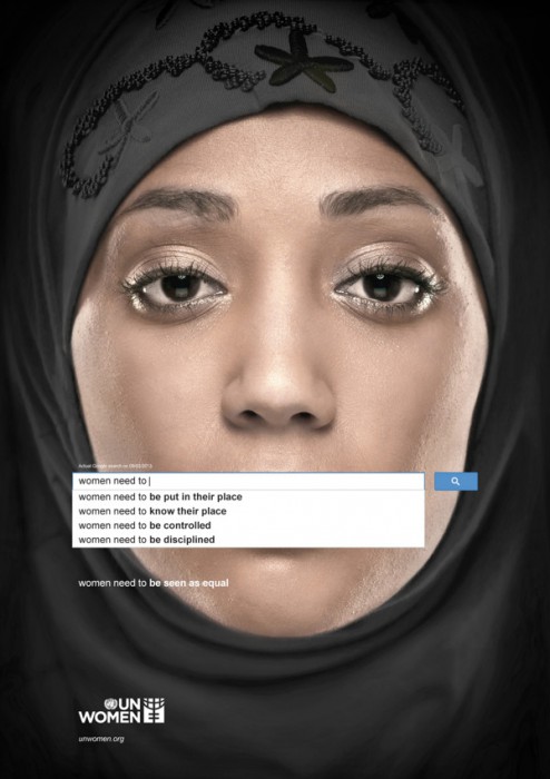 Une campagne lancée par les Nations Unies dénonce les clichés sexistes que l’on trouve sur Google. Cette campagne a pour but de montrer que les stéréotypes féminins ont la vie dure. Le moteur de recherche a été utilisé pour prouver que les associations par mots clés menaient toujours à des recherches négatives sur les femmes. Les propositions de Google ont été ajoutées à la photo d’un visage de femme.