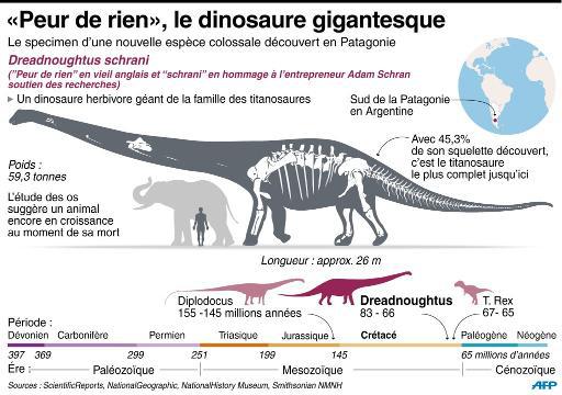 Dreadnought a été découvert en Patagonie et selon les premières mesures qui ont été effectuées, il s’agirait du plus gros animal terrestre. Fait surprenant, le précédent détenteur du record avait également été trouvé en Argentine. Le dinosaure découvert jeudi dernier mesure 26 mètres de long, a un cou de 11 mètres, et aurai pesé près de 60 tonnes.