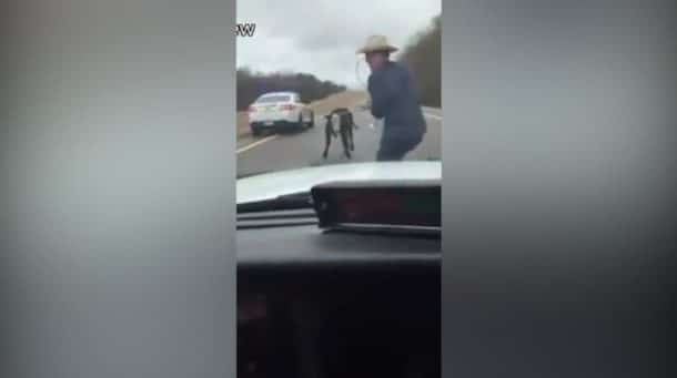 Il attrape une vache au lasso sur l’autoroute ! (vidéo)