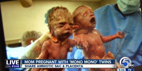 Sa grossesse appelée « mono-mono » (monochoriale monoamniotique) était déjà exceptionnelle. Le cas se présente qu’une seule fois toutes les 30 000 grossesses! Cela arrive quand les jumeaux/jumelles partagent le même placenta, le même sac amniotique et la même couche extérieure…une grossesse très dangereuse donc car les bébés peuvent s’enrouler autour du cordon ombilical! Cependant, l’accouchement s’est très bien passé et les deux petites Jenna et Jillian se portent très bien! Un beau souvenir pour les parents!