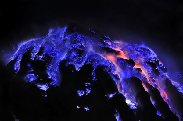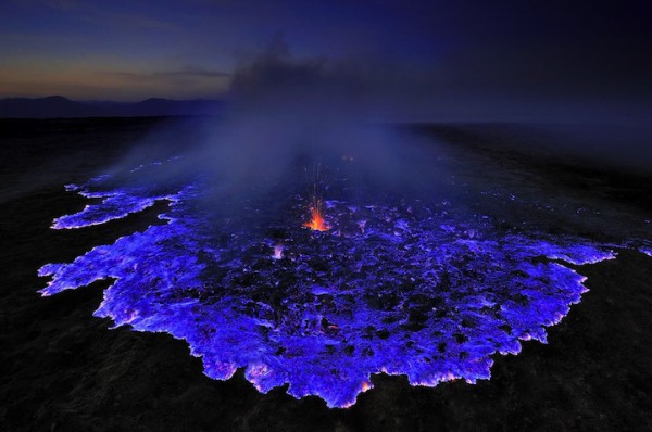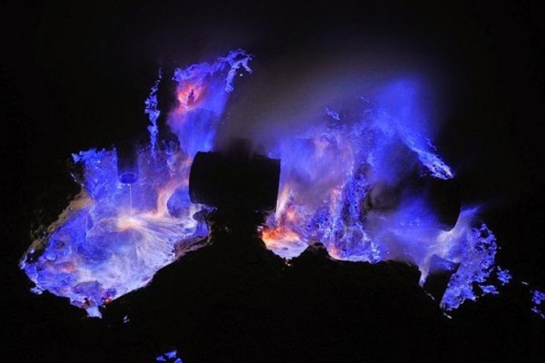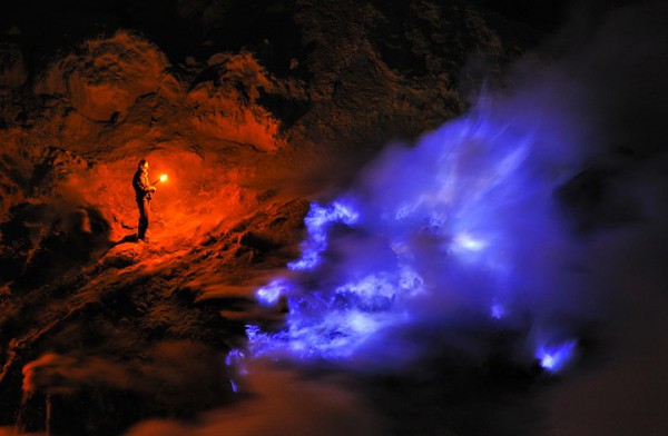 Non, nous ne sommes pas sur Pandora mais bien sur la planète Terre ! La nuit en Indonésie, il y a un endroit où il est possible d’assister à un spectacle volcanique exceptionnel. Réputé pour abriter le lac le plus acide du monde, le volcan Kawah Ijen l’est aussi pour ses magnifiques éruptions de lave bleue. Niché dans les montagnes de Kawah, il se trouve à proximité de l’une des plus grandes mines de soufre du monde, et c’est cette abondance de soufre qui confère cette teinte bleutée à la lave. Les émissions de gaz sulfurique produisent des flammes pouvant atteindre jusqu’à 5 mètres de haut et rendent l’air très acide, et toxique, c’est pourquoi il est très préférable de se munir d’un masque pour s’en approcher. En 2008 le photographe Olivier Gunewald s’y est aventuré et a eu l’occasion de photographier l’une de ses éruptions spectaculaire . Aujourd’hui il partage ses impressionnants clichés avec nous.