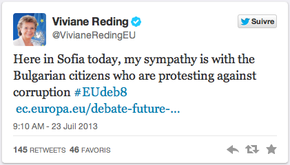 « A Sofia, j’exprime mon soutien aux citoyens bulgares, qui manifestent contre la corruption. »