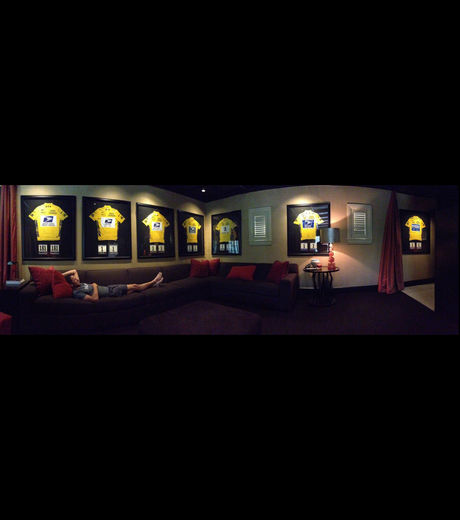 Originaire du Texas, Lance est rentré dans son pays natal et a tweeté une photo de lui dans son salon entouré de ses 7 maillots jaunes accompagné du message : « De retour à Austin, je me détends…«