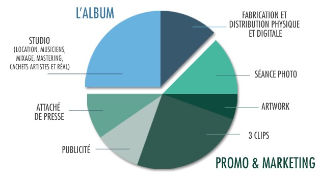 My Major Company explique bien que les postes de dépense sont différents d’un artiste à l’autre, mais la projection pourrait être celle là :
