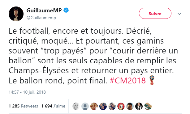 TDN > Actualité Les meilleurs Tweets sur FRANCE-BELGIQUE : un pur régal ! Publié par Curtis Macé le 11 Juil 2018 à 10:39 Suivez nous sur Google News Partagez cet article Page précédente Page suivante