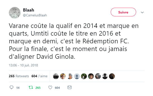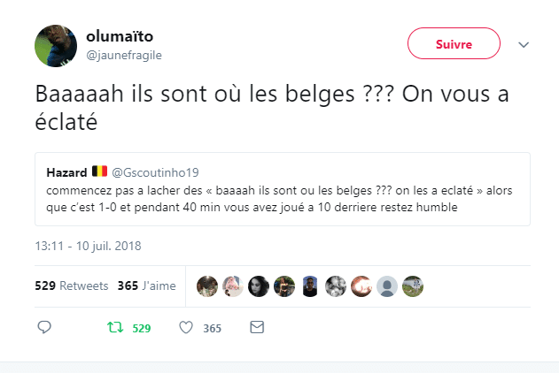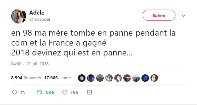 TDN > Actualité Les meilleurs Tweets sur FRANCE-BELGIQUE : un pur régal ! Publié par Curtis Macé le 11 Juil 2018 à 10:39 Suivez nous sur Google News Partagez cet article Page précédente Page suivante