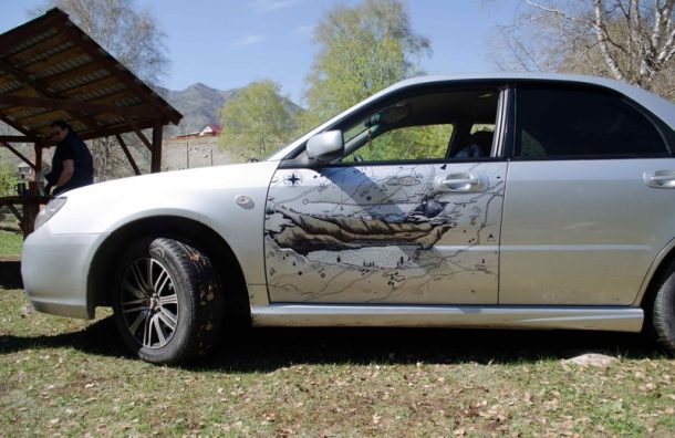 Dans la République de l’Altaï, un territoire montagneux russe, entre la Mongolie et le Kazakhstan, un pick up est rentré dans la portière de sa voiture. Au lieu d’aller faire remplacer la portière, le propriétaire a utilisé sa créativité. Il a commencé à dessiner une carte de la région, profitant de la topographie vallonnée. Le résultat est bluffant. La solution est moins onéreuse qu’une nouvelle porte et beaucoup plus originale. Regardez la transformation de sa voiture et les talents du propriétaire.