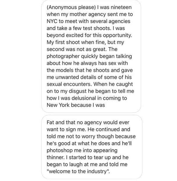 Un mannequin célèbre publie une centaine de témoignages de mannequins dont on aurait abusé durant des séances photos