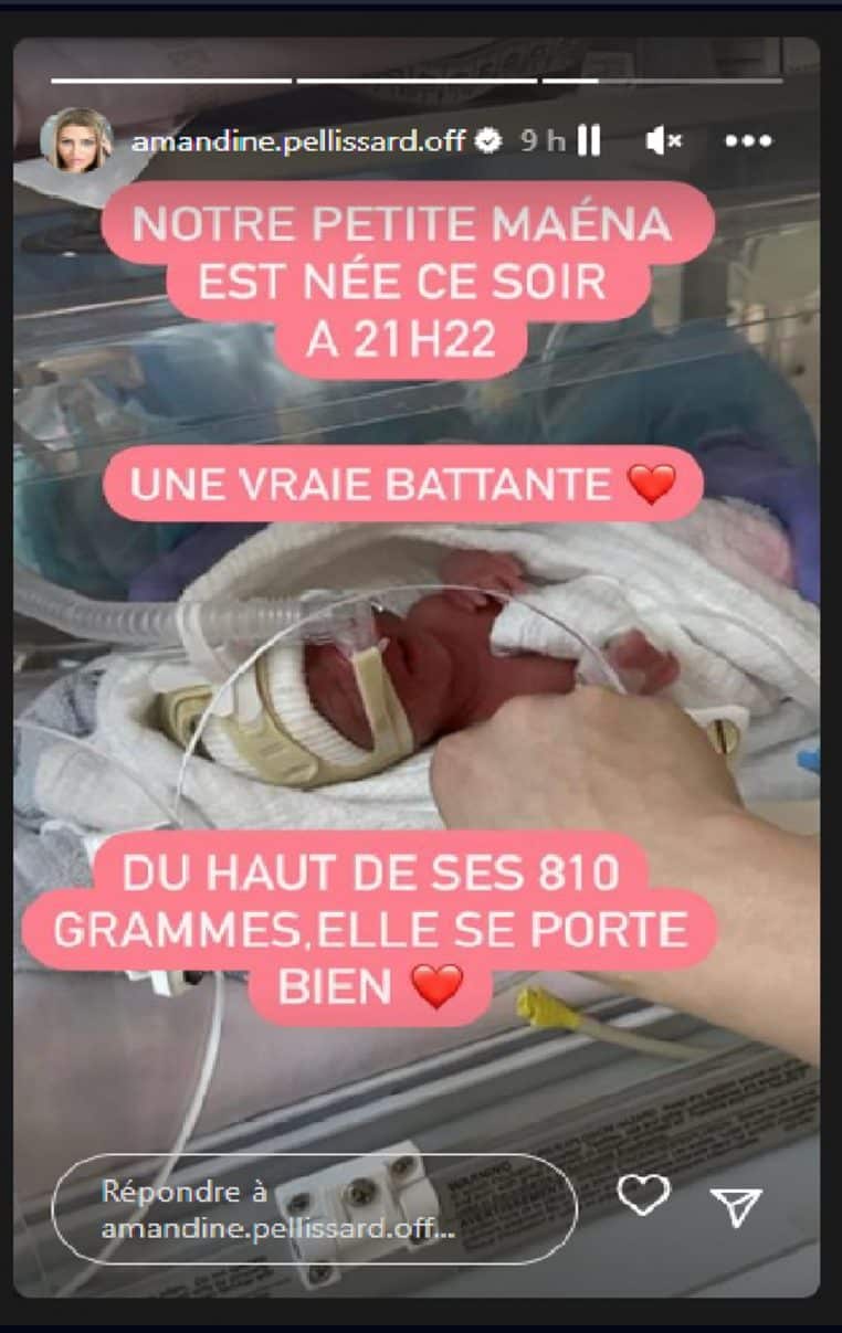 Hospitalisée en raison d’une fissure de la poche des eaux alors qu’elle n’était qu’à six mois de grossesse, Amandine Pellissard a donné naissance à sa fille, Maéna, le dimanche 6 août.