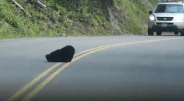 Quand ils ont vu cette chose noire au milieu de la route, tous les automobilistes se sont arrêtés… Ils n’en revenaient pas ! (vidéo)