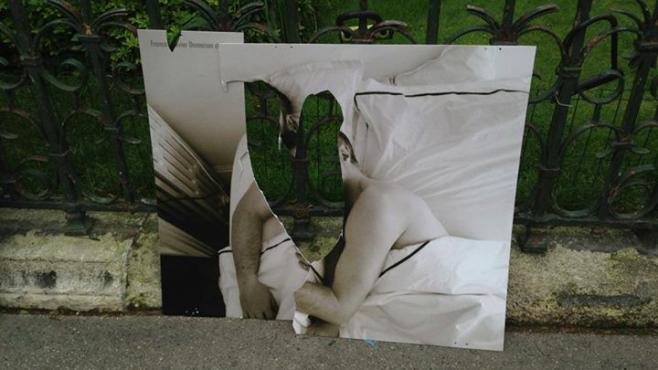 Et bien cette exposition visant à lutter contre l’homophobie a été victime du vandalisme des homophobes. Dans la nuit de vendredi à samedi, des individus ont lacéré les visages des couples, épargnant même les enfants.