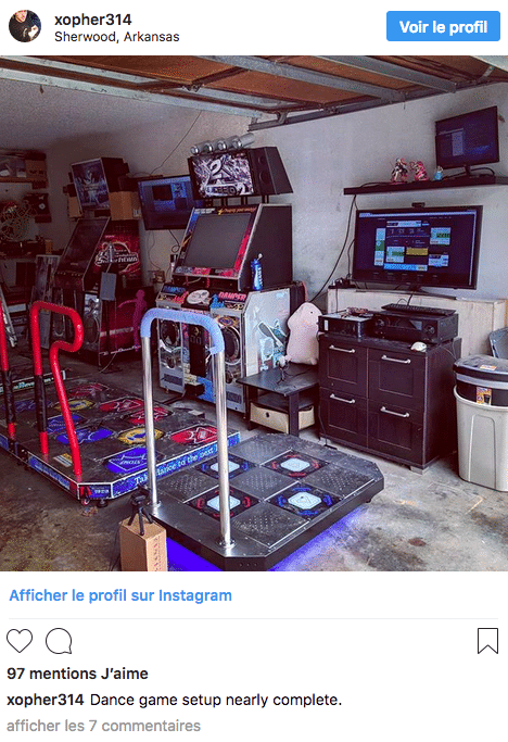Désormais, l’américain dispose de plusieurs versions du jeu Dance Dance Revolution qu’il entrepose dans son garage. Et il joue désormais à un niveau compétitif.