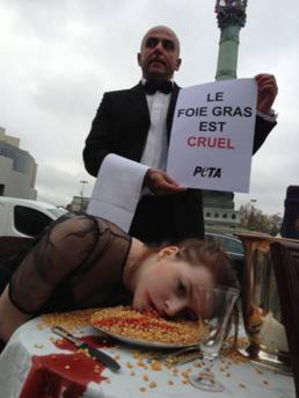 PETA gave une femme en pleine rue pour dénoncer la fabrication du foie gras
