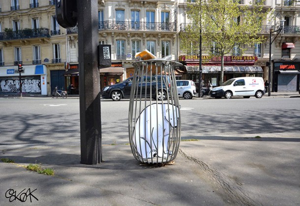 OakOak, voici un artiste français dans l’art urbain (ou street arts) qui ne manque pas de créativité ni d’humour ! Résidant dans la ville de Saint Etienne, il s’est amusé à adapter ses « street arts » à l’environnement qui l’entoure avec une imagination débordante en plus d’avoir un vrai talent de création.