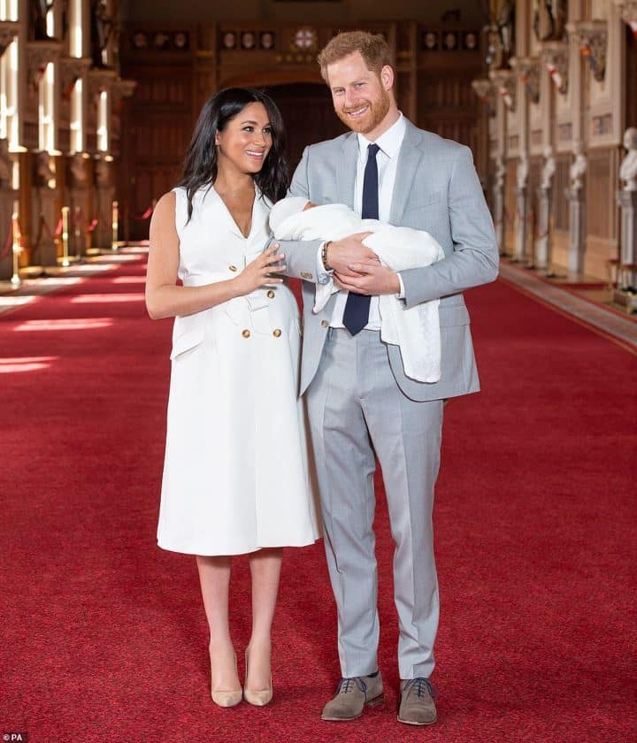 À seulement 2 jours, le Royal Baby tant attendu a fait sa première apparition sur le Red Carpet. Le duc et la duchesse de Sussex ont présenté le « Baby Sussex » ce 8 Mai. C’est dans l’enceinte du château de Windsor que les présentations ont été faites. Les jeunes parents se sont montrés plus heureux que jamais et Meghan était sublime dans une belle robe blanche nouée à la taille. Elle portait des escarpins beiges. L’heureuse maman a déclaré qu’elle avait « les deux hommes les plus merveilleux au monde. » Le Royal Baby quant à lui était tout de blanc vêtu et dormait à poings fermés. Difficile de dire s’il ressemble à son papa ou sa maman pour l’instant. En tout cas, il est apparu paisible et serein, ne se doutant certainement pas de toute l’agitation qu’il suscite.