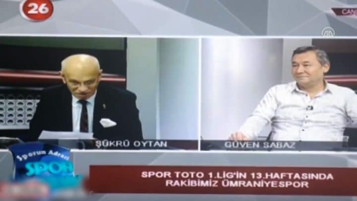 Şükrü Oytan, présentateur de l’émission sportive de la chaine locale de la province d’Eskisehir s’est mis à trembler, pointer du nez et tomber de sa chaise en convulsant. L’animateur a fait une crise cardiaque en direct à la télé. Regardez les images impressionnantes de son collègue qui a interrompu son intervention pour le secourir.