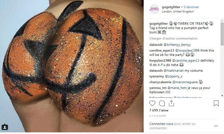 Post instagram de Go Get Glitter sur les fesses citrouille pailletées !
