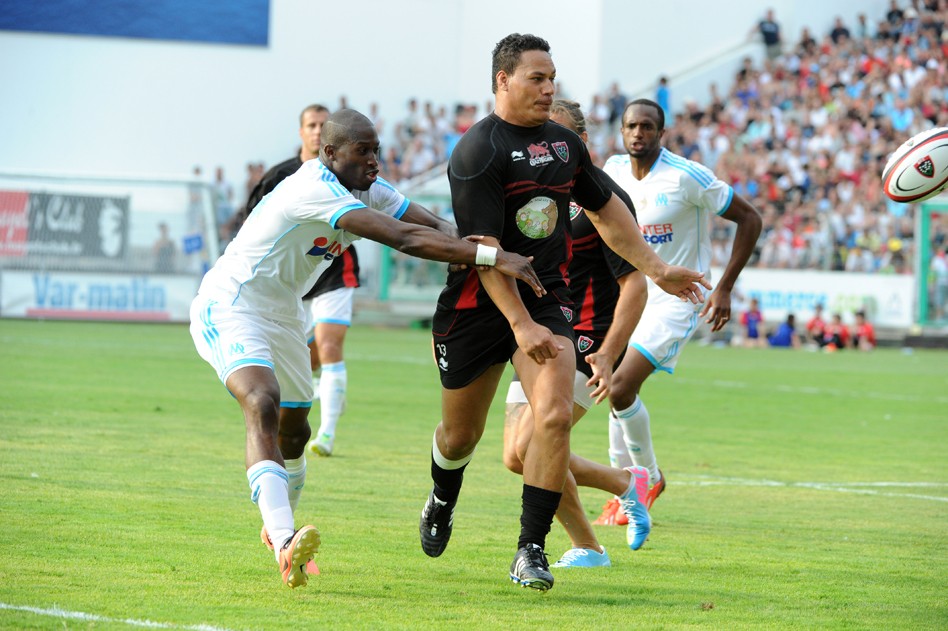 De retour de leur stage de préparation en Suisse qui a notamment été marqué par la présence de Marion Bartoli, l’OM participait hier à un match caritatif contre le Racing Club de Toulon dans un match qui mêlait football et rugby ! Le spectacle et l’esprit festif ont contribué au succès de cet événement.Â